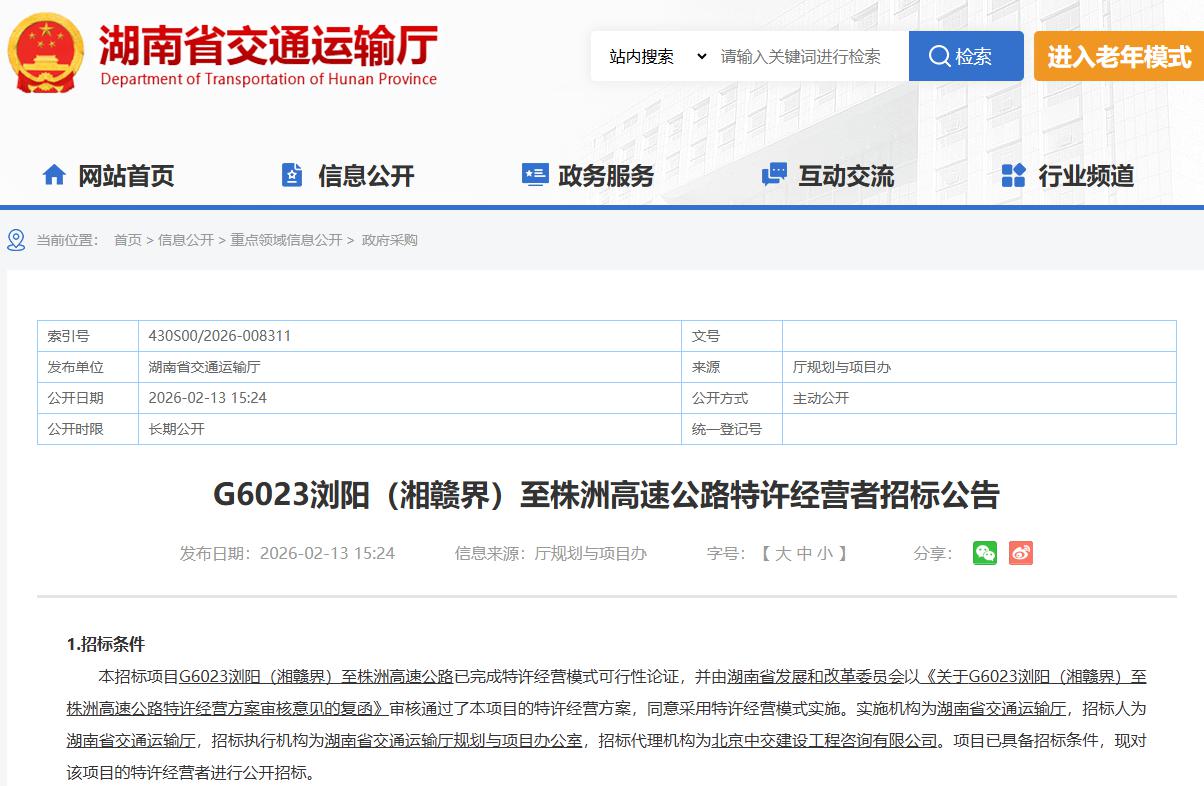 作为国家高速G6023南昌至凤凰的组成部分,浏株高速已纳入国家公路网规划,且被湖南省交通运输厅列入2026年力争新开工项目范围。