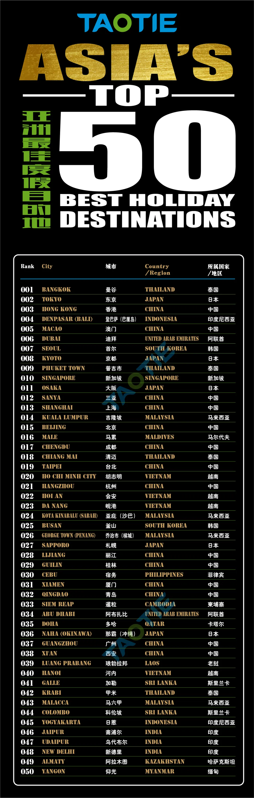 2026年度《TAOTIE亚洲最佳度假目的地TOP50》不是一份静态的排名,而是一面镜子。它照出了亚洲度假市场的真实格局,即中、日、泰领跑,东南亚多点开花,中东与南亚开始崛起。它也照出了旅行者的真实需求,那就是他们不再满足于“拍照打卡”,而是渴望体验、沉浸与连接。