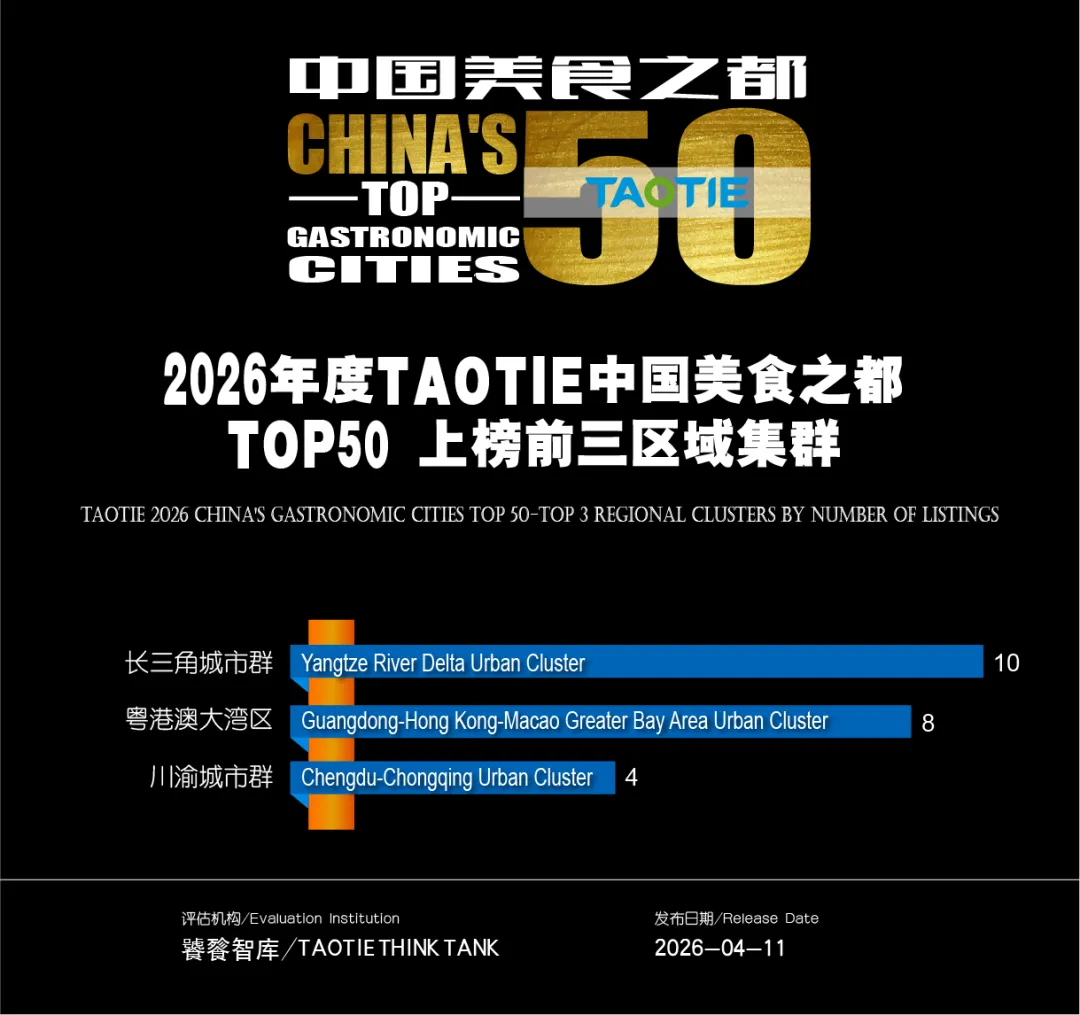 2026年度,由澳门TAOTIE THINK TANK(饕餮智库)主导编制的《TAOTIE中国美食之都》榜单正式揭晓,五十座城市凭借各自独特的风味基因与餐饮生态跻身其中,共同描摹出一幅热气腾腾的中国美食城市图谱。本届榜单的变化尤为值得关注:入境旅游持续升温催生"为一口味道赴一座城"的消费新潮,地方风味借短视频与社交平台加速全球破圈,非遗饮食的活态传承与产业化运营走向纵深——种种力量交汇之下,中国美食城市的座次正在经历一场深刻的重新洗牌。