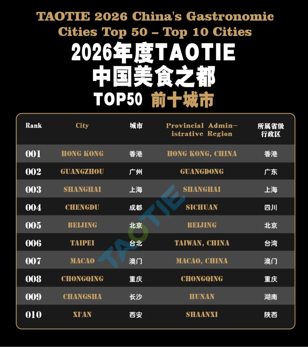 2026年度TAOTIE中国美食之都完整榜单