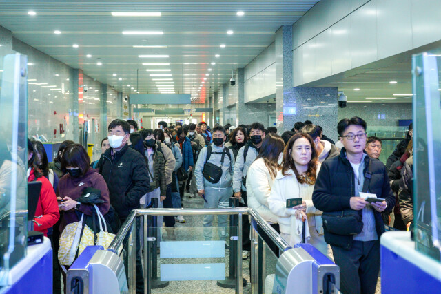 春节期间,湖南边检总站实时跟踪口岸客流变化,根据流量高峰及时加开查验通道,最大限度缩短旅客候检时间;实施动态用警机制,增派台外咨询、引导警力,为旅客提供全方位指引服务,维护口岸正常通关秩序;加大移民管理创新政策宣传力度,加强与机场、航空公司及口岸联检单位的协调互通,全力保障通关顺畅。